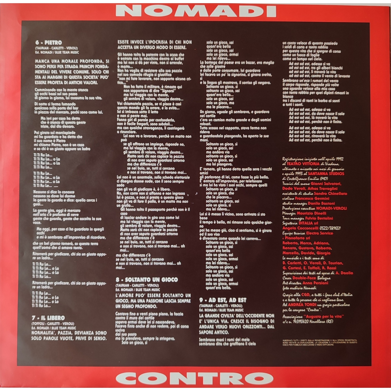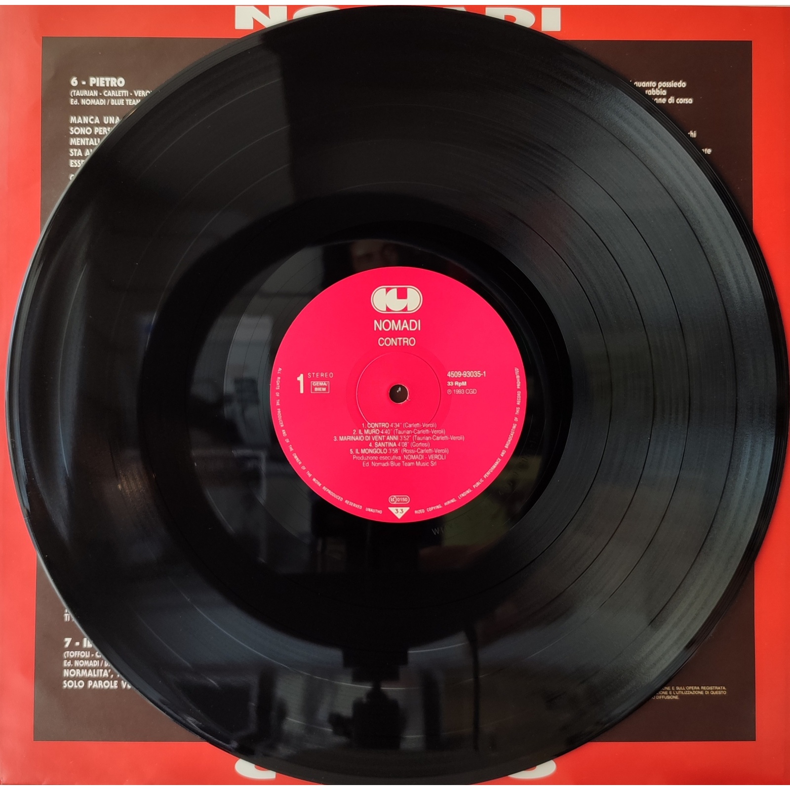 Prima edizione italiana, in vinile di seconda mano, del sedicesimo album in studio del gruppo po rock italiano Nomadi,"Contro".