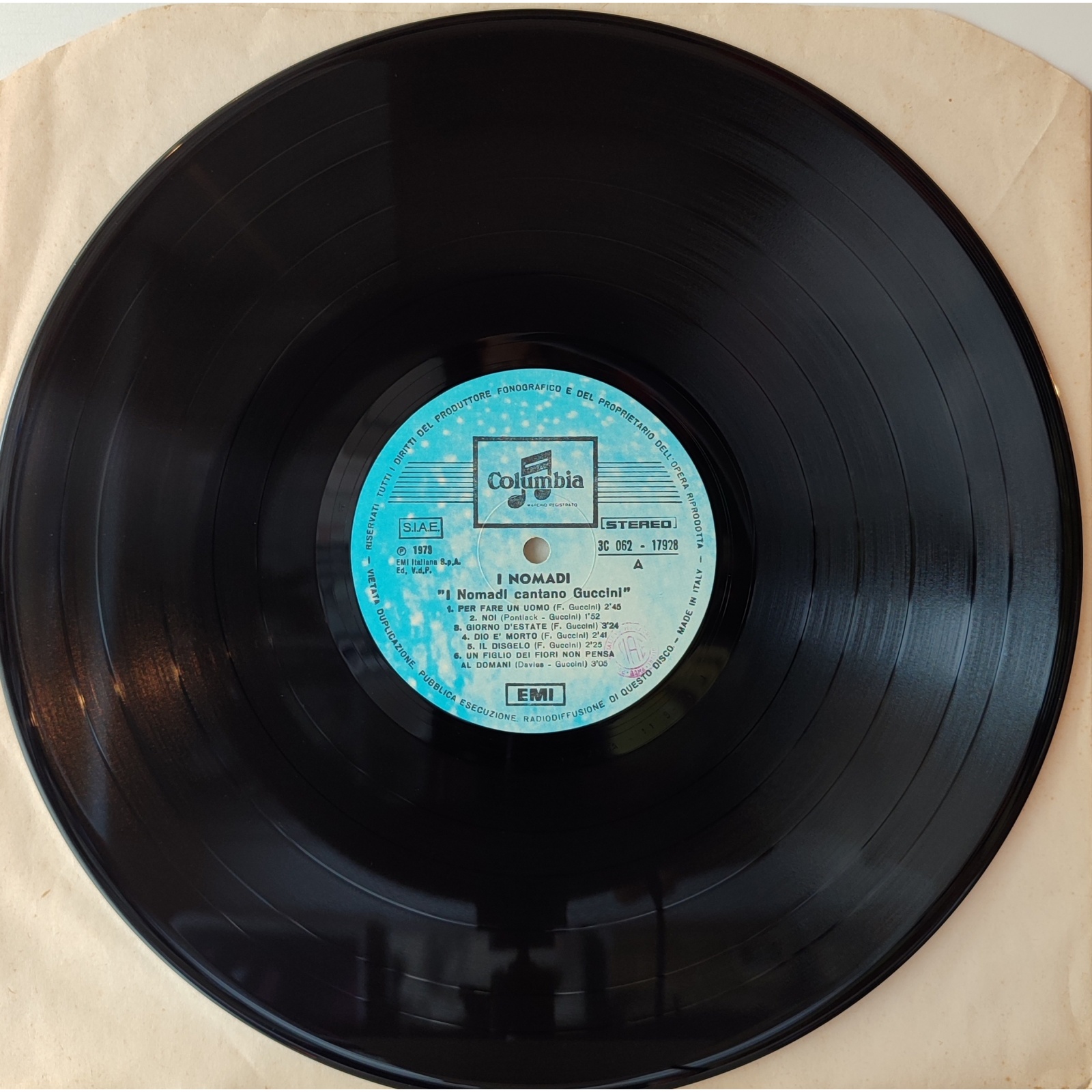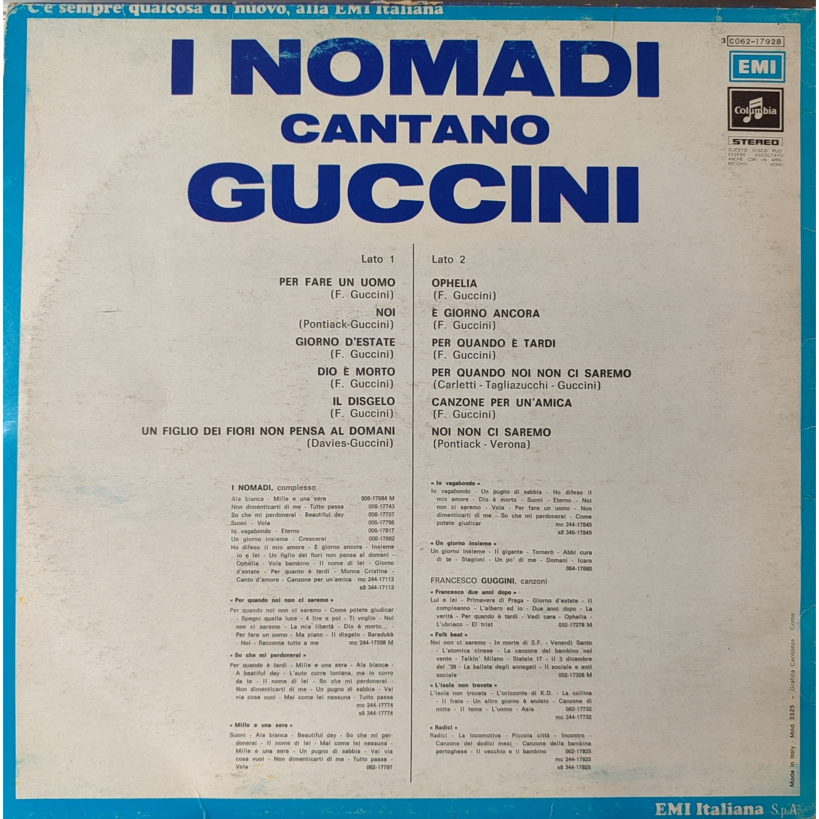 Prima edizione italiana, in vinile di seconda mano, della raccolta "I Nomadi cantano Guccini" del gruppo pop italiano Nomadi.