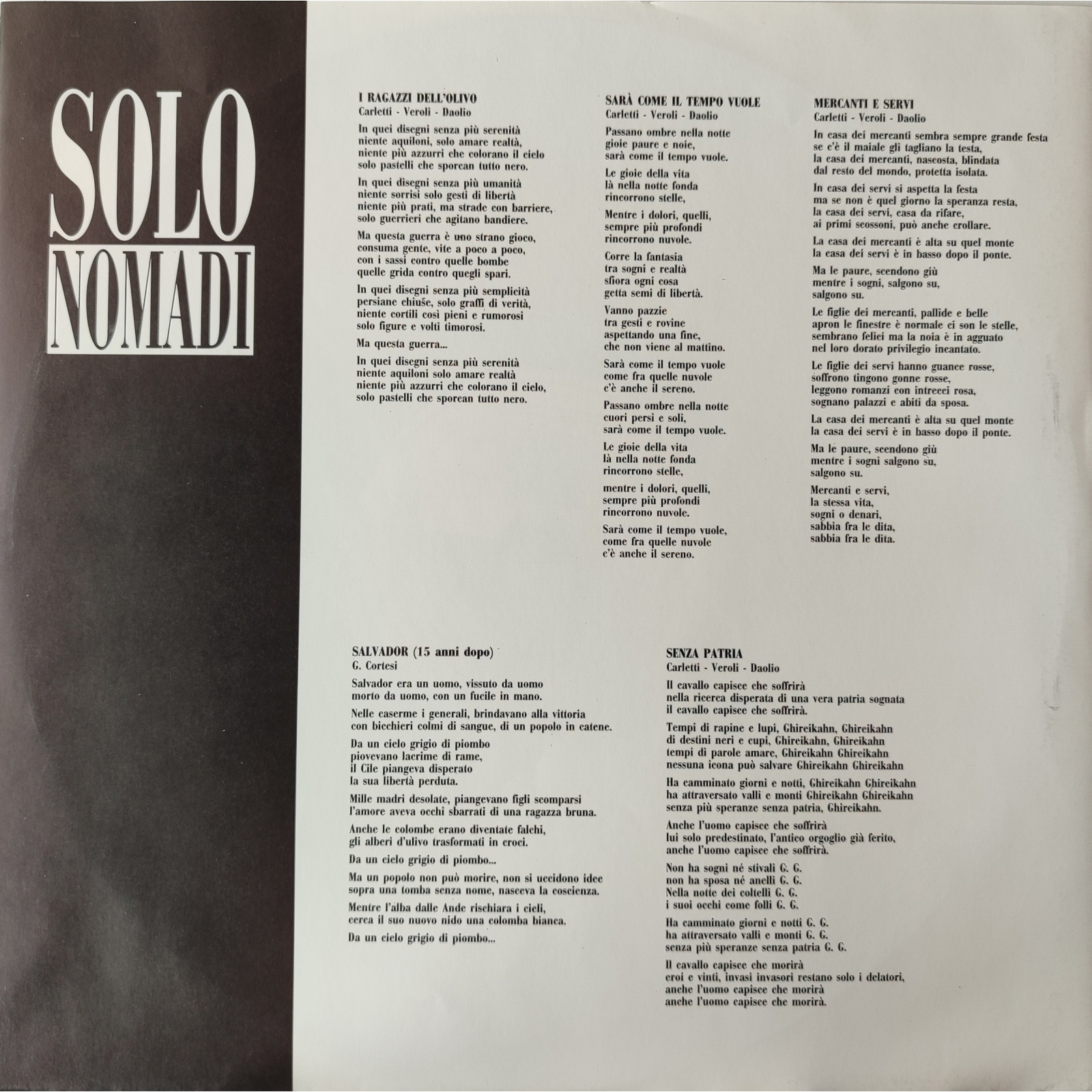 Prima edizione italiana, in vinile di seconda mano, del quattordicesimo album in studio del gruppo pop italiano Nomadi,"Solo Nomadi".