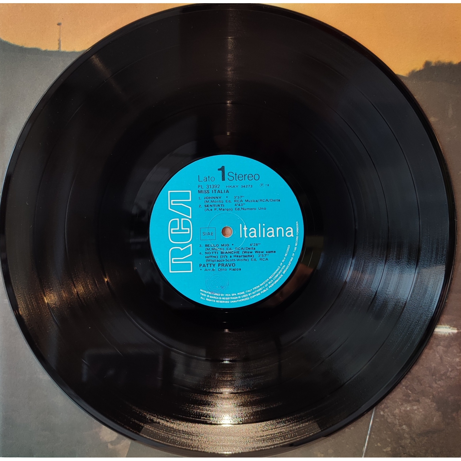 Prima edizione italiana, in vinile di seconda mano, del tredicesimo album in studio della cantante Patty Pravo,"Miss Italia".