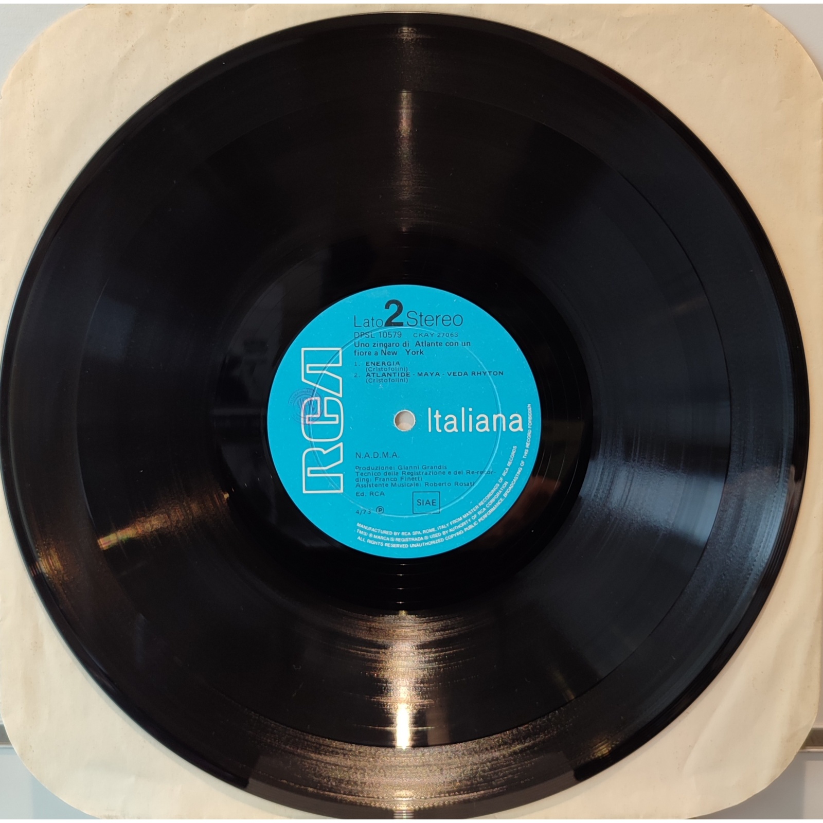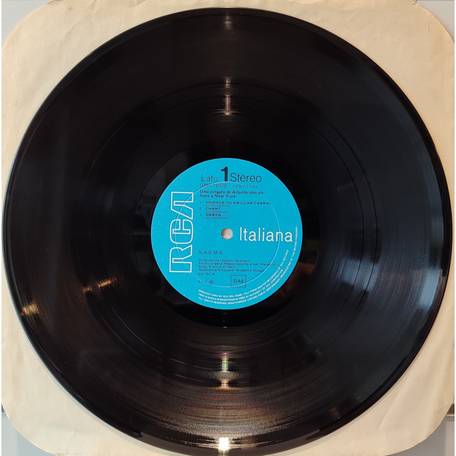 Rarissima prima edizione italiana, in vinile di seconda mano, dell'unico album in studio del gruppo progressive/ free jazz italiano N.A.D.M.A. (Natural Arkestra Da Maya Alta), "Uno zingaro di Atlante con un fiore a New York".