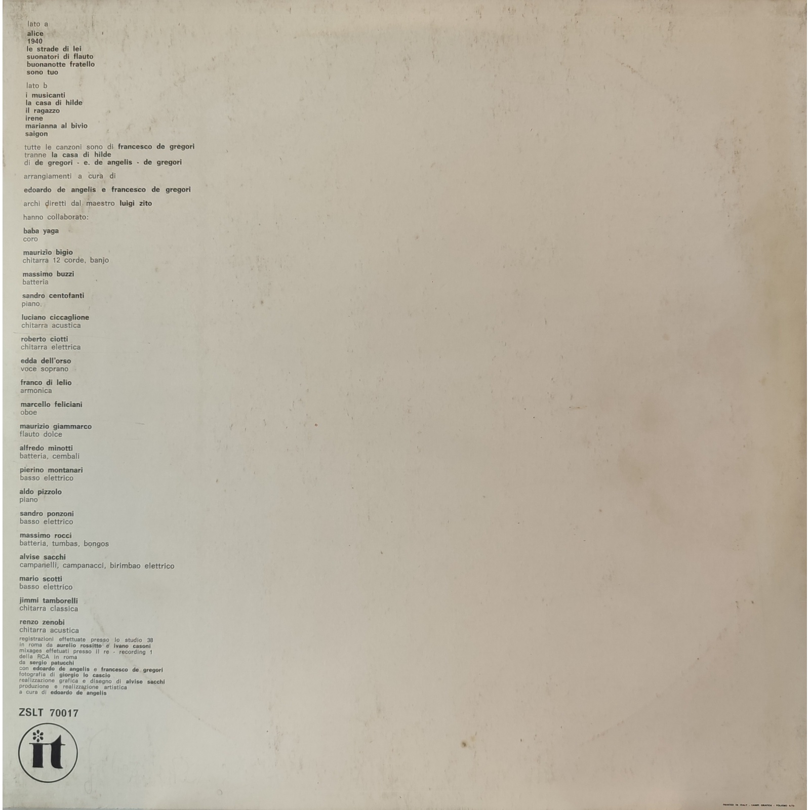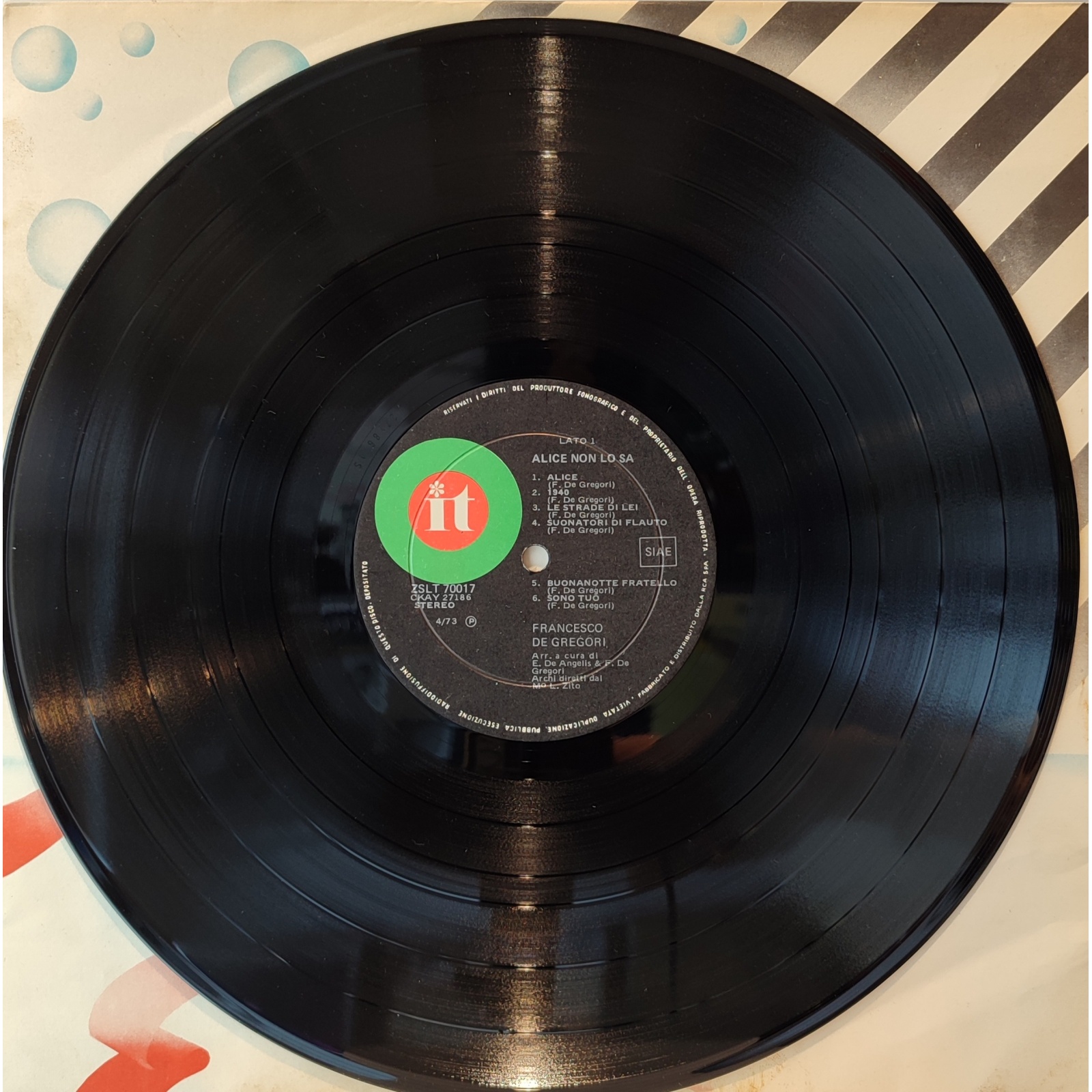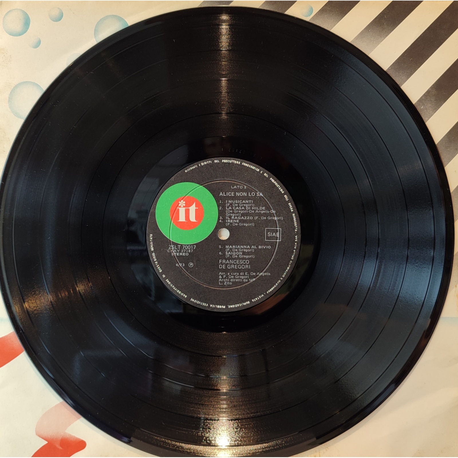 Datato 1973, etichetta It, comprensivo di inner sleeve originale con disegno e testi.