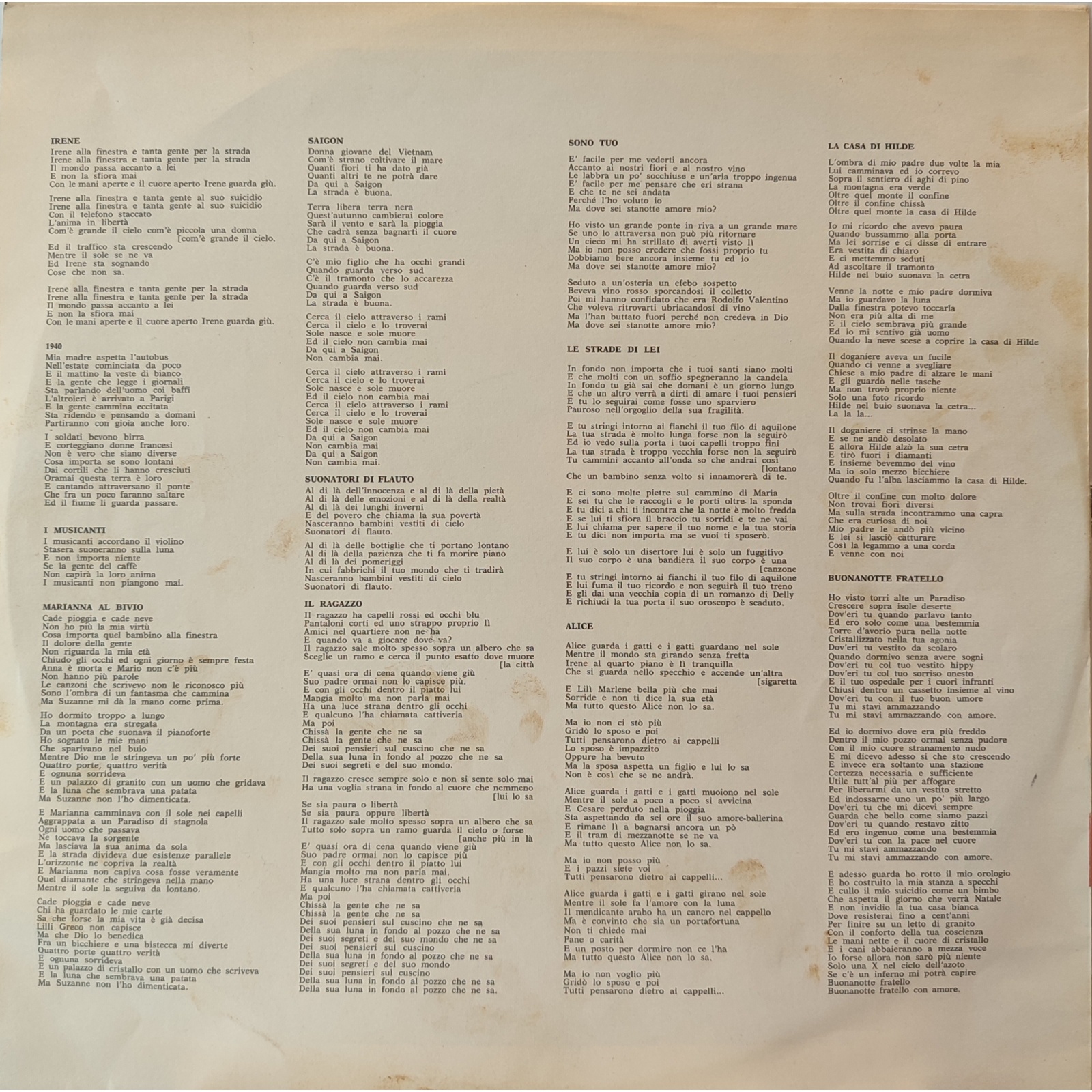 Rara prima edizione italiana, in vinile di seconda mano, dell'album "Alice non lo sa" del cantautore italiano Francesco De Gregori.