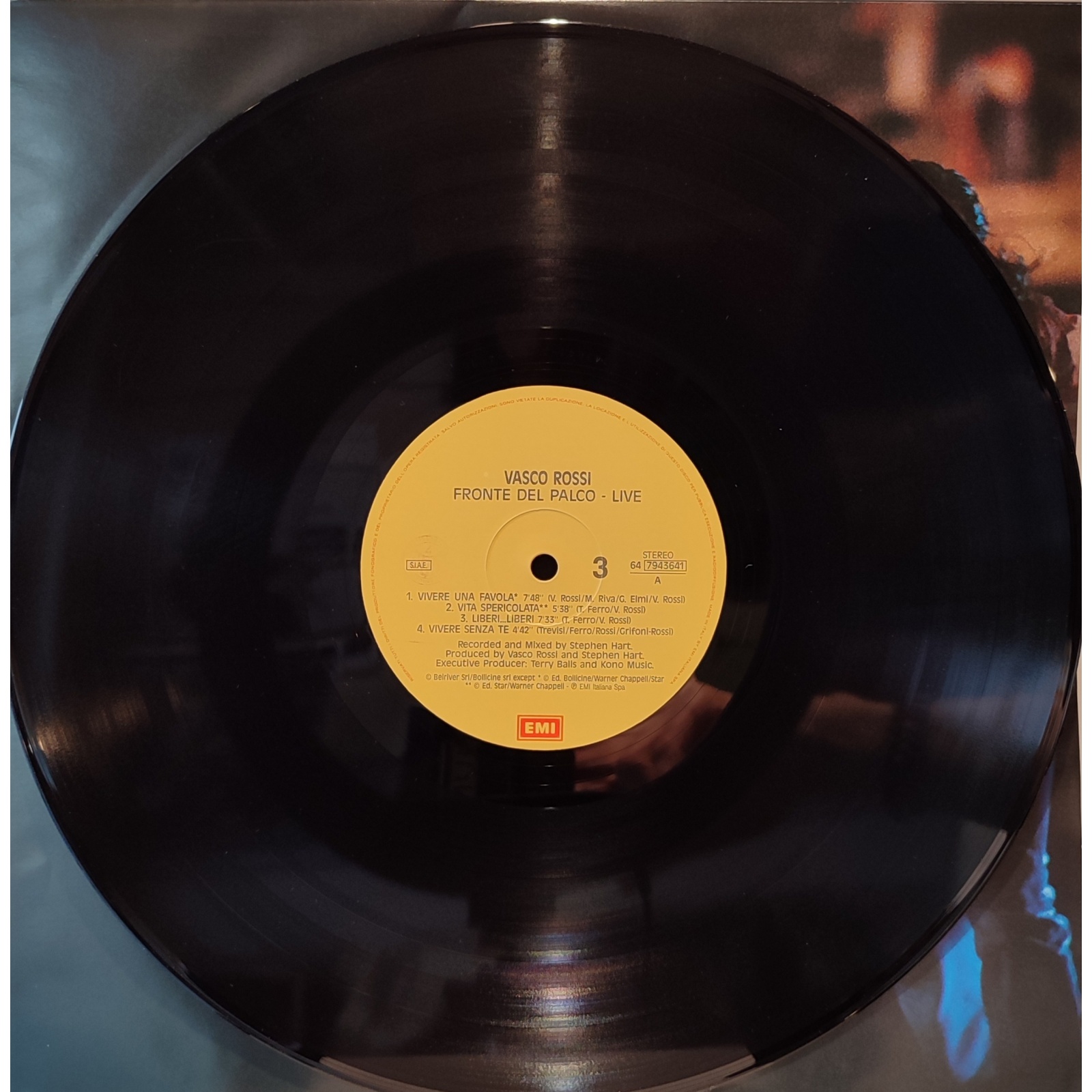Prima edizione italiana, in vinile di seconda mano, del live "Fronte del palco" del cantautore italiano Vasco Rossi.