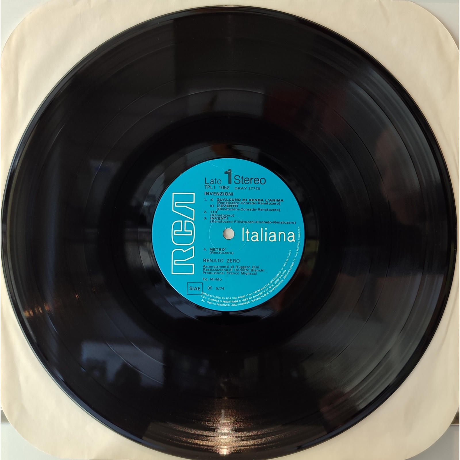 Prima edizione italiana, in vinile di seconda mano, del secondo album in studio del cantautore italiano Renato Zero,"Invenzioni".