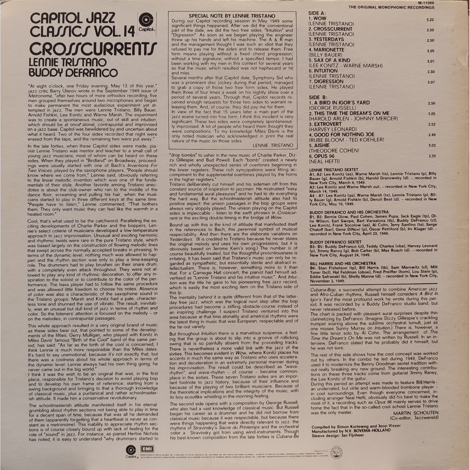 Prima edizione americana, in vinile di seconda mano, dell'album "Crosscurrents" del pianista statunitense Lennie Tristano e del clarinettista statunitense Buddy De Franco.