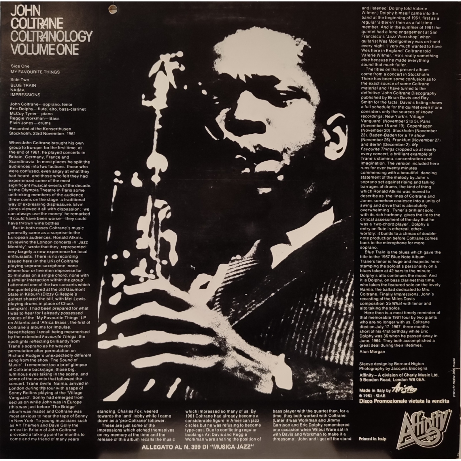 Ristampa italiana, in vinile di seconda mano, del live "Coltranology Volume one" del sassofonista statunitense John Coltrane.