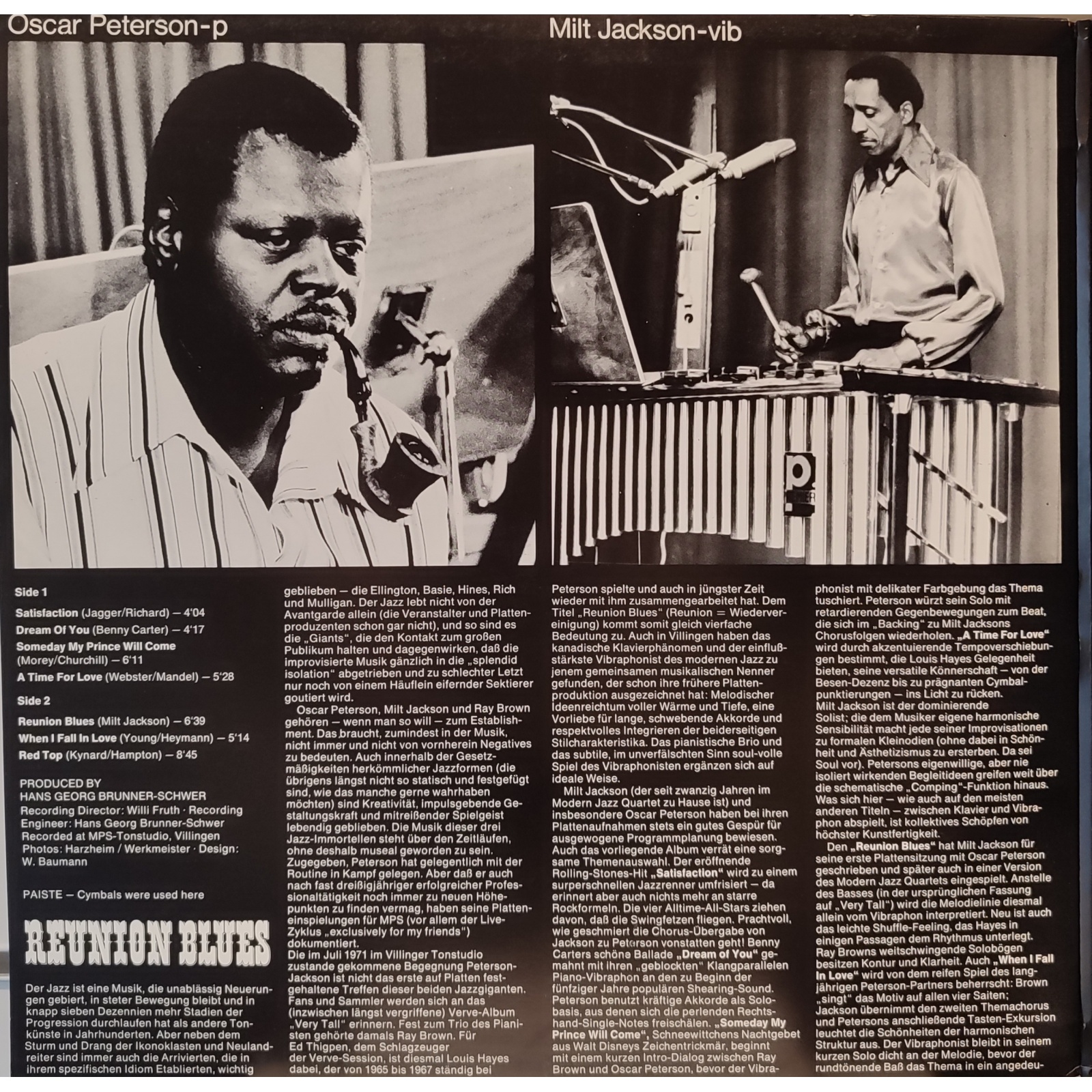 Ristampa olandese, in vinile di seconda mano, dell'album "Reunion blues" del pianista canadese Oscar Peterson con Milt Jackson , Ray Brown e Louis Hayes .