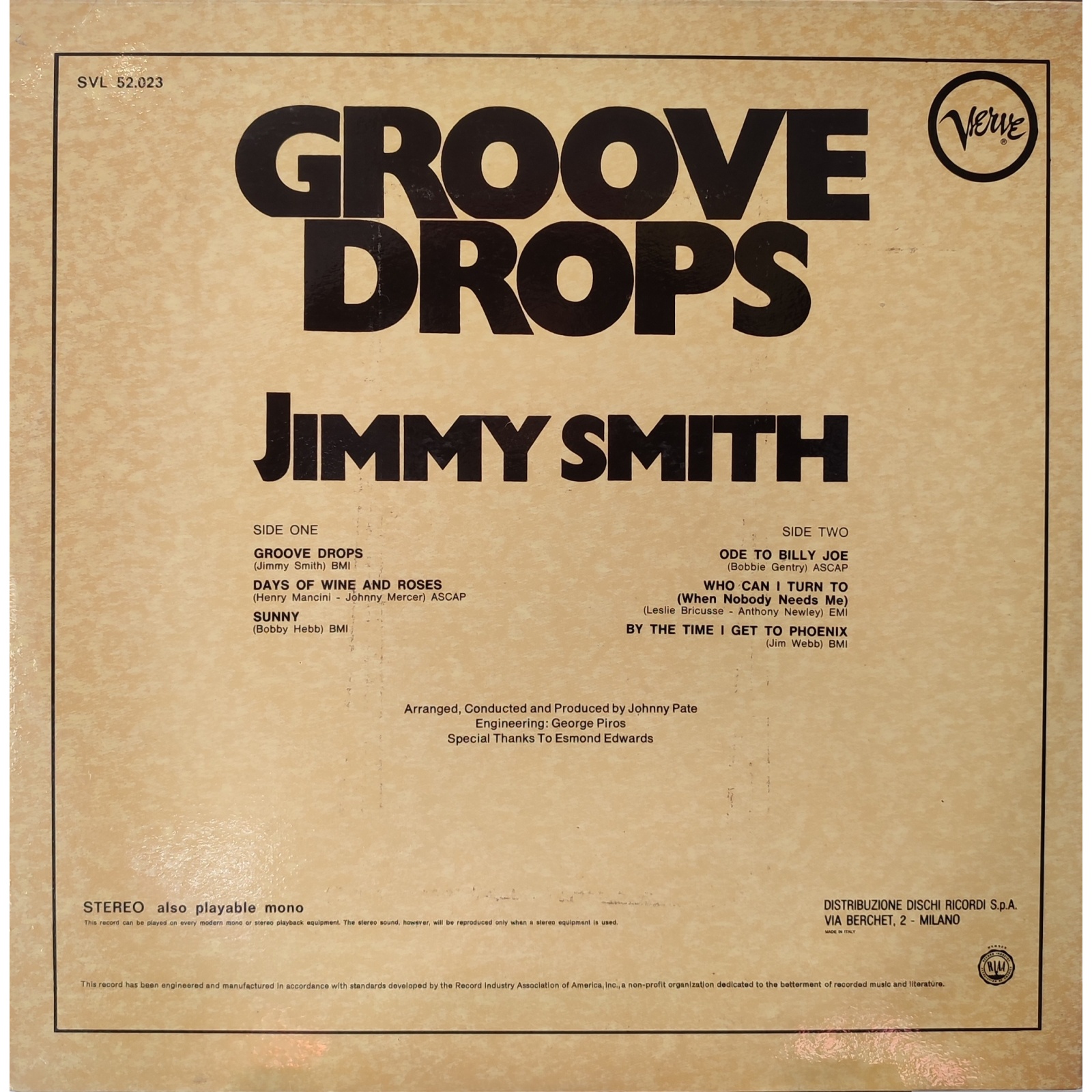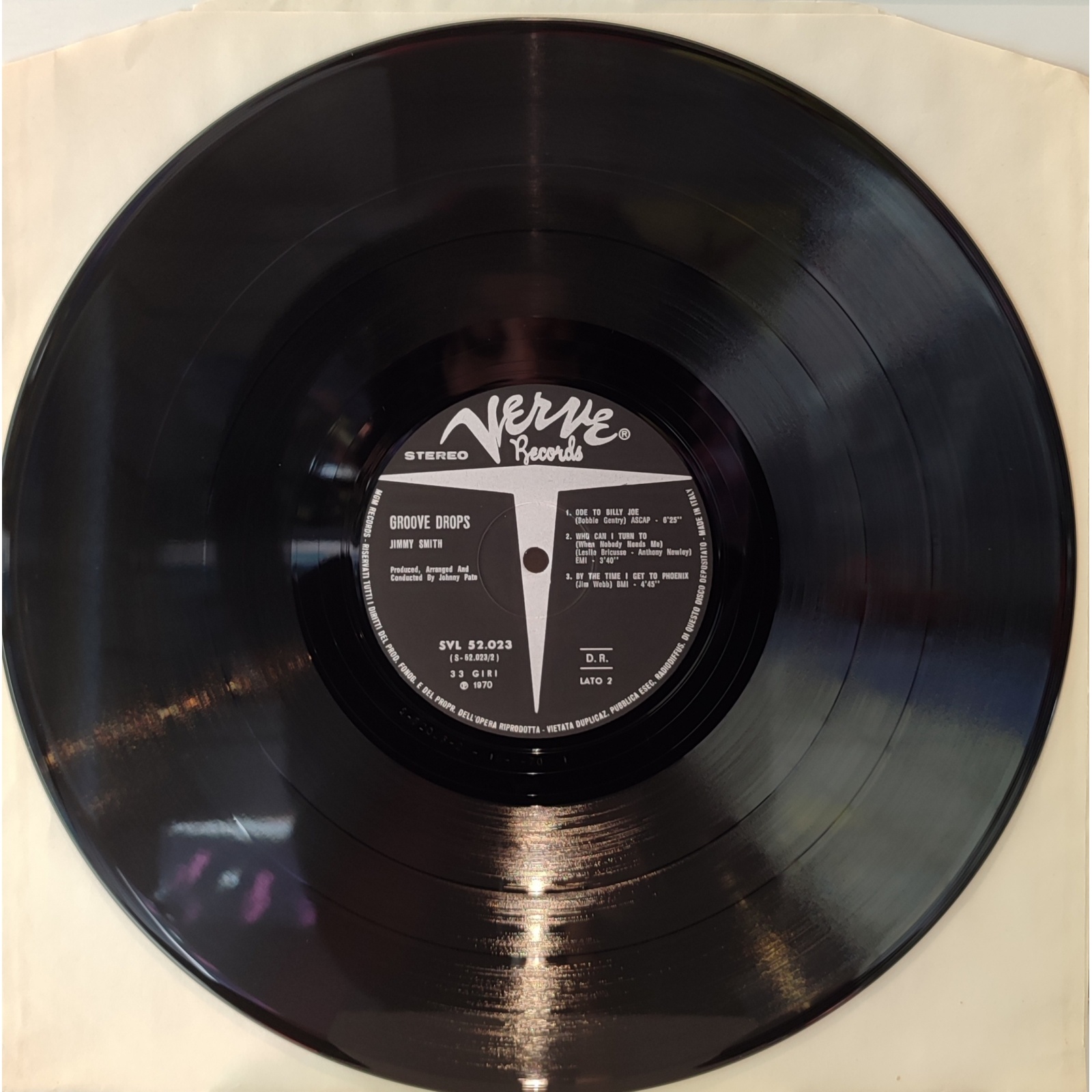 Prima edizione italiana, in vinile di seconda mano, dell' album "Groove drops" dell'organista statunitense Jimmy Smith.