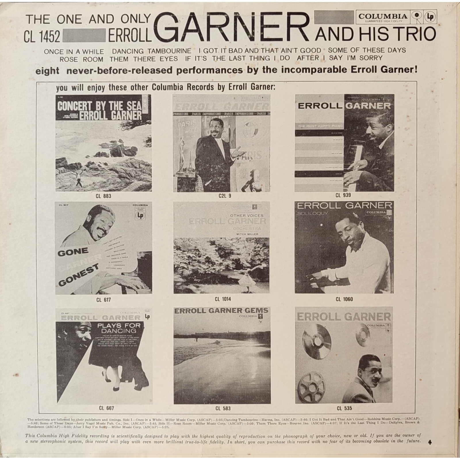 Bellissima prima edizione americana, in vinile di seconda mano, dell'album "The One and only" del pianista jazz statunitense Erroll Garner.