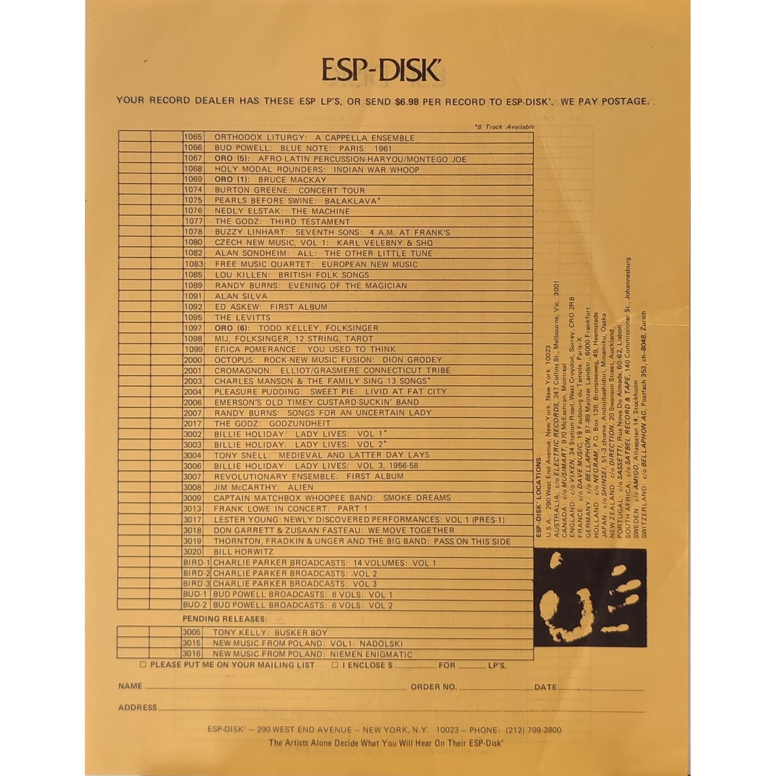 Datato 1974, etichetta Esp Disk, comprensivo di inserto della casa discografica.