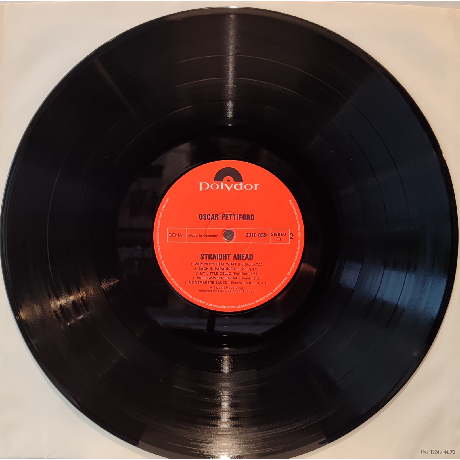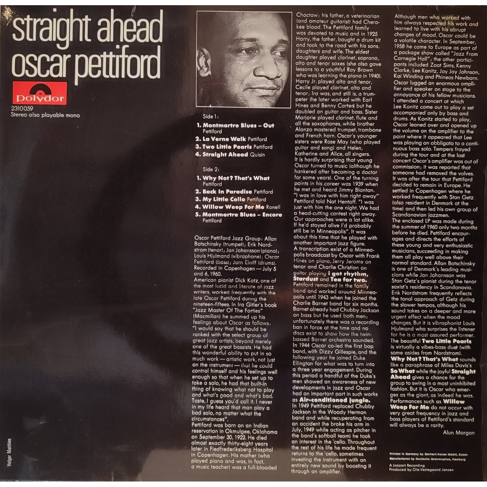 Prima edizione tedesca, in vinile di seconda mano, dell'album "Straight ahead" del contrabbassista e violoncellista statunitense Oscar Pettiford.