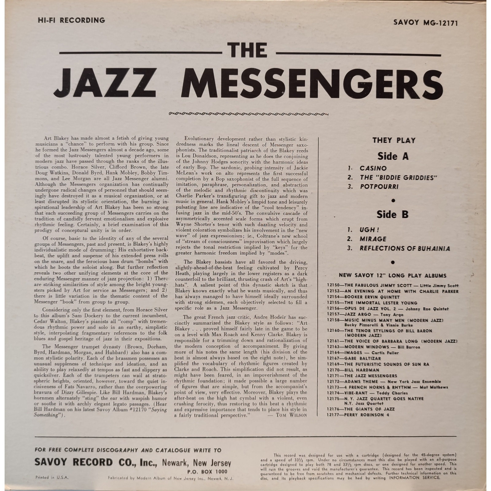 Datato 1973, etichetta Savoy.