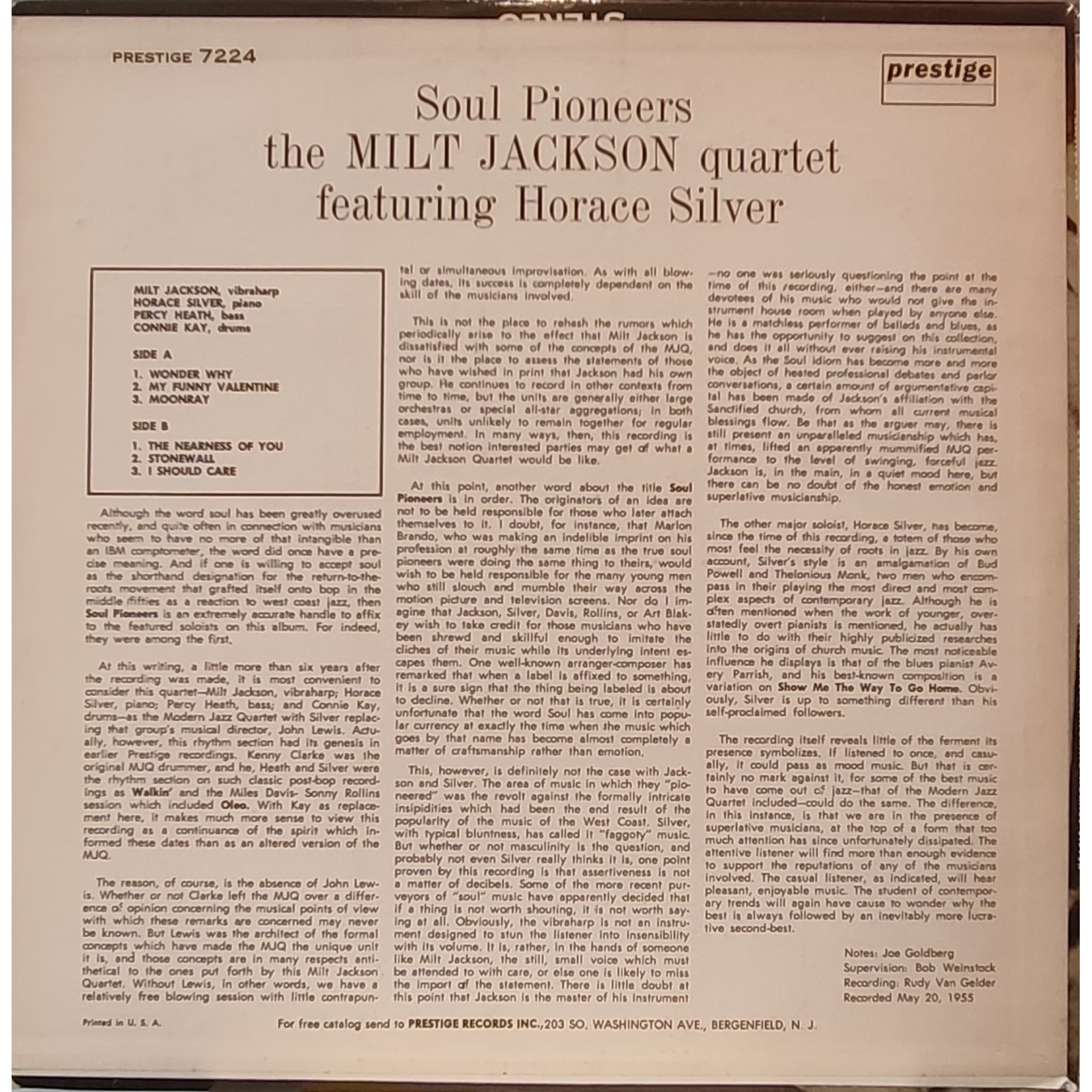 Ristampa americana, in vinile di seconda mano, dell'album "Soul pioneers" del Milt Jackson Quartet con la collaborazione di Horace Silver.