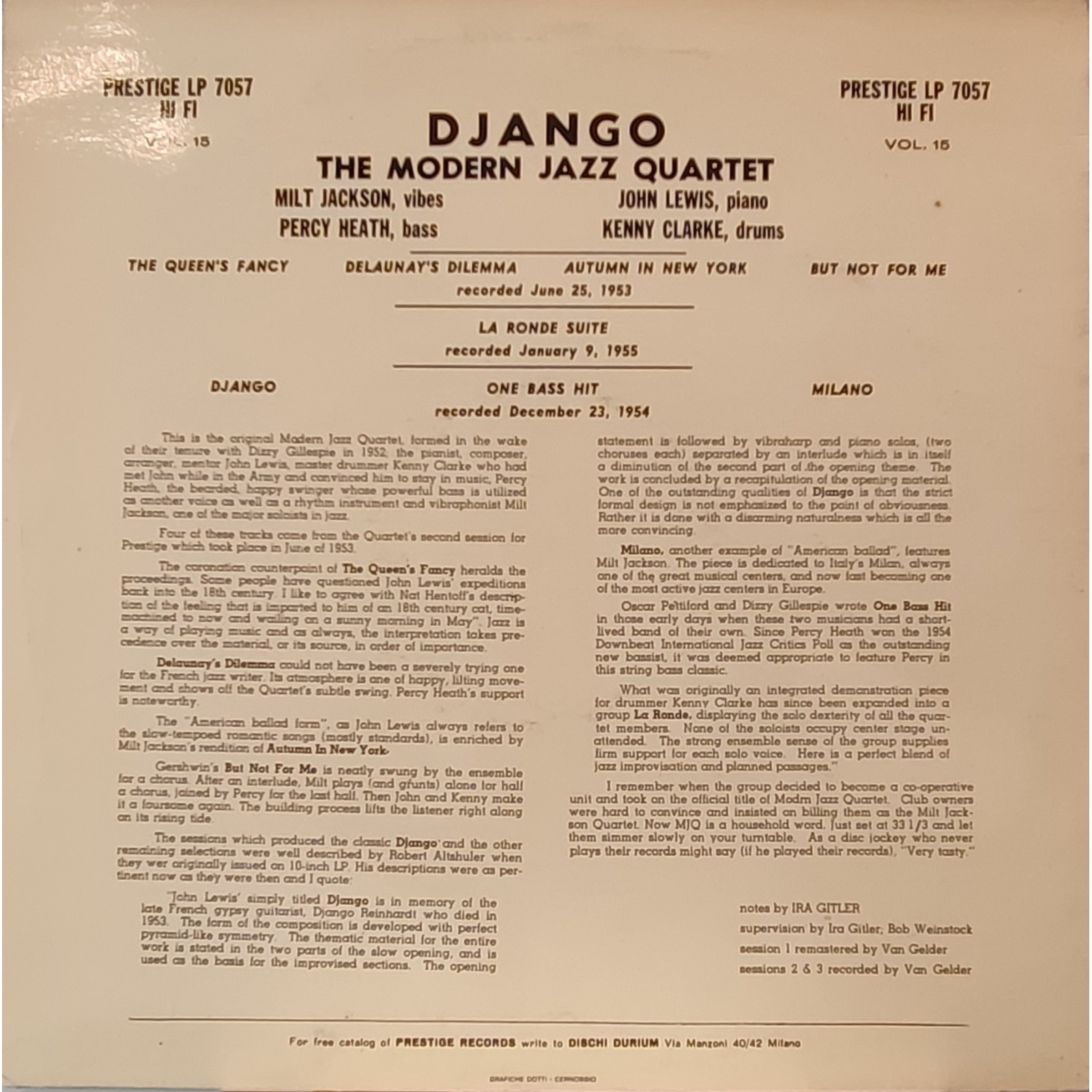 Ristampa italiana, in vinile di seconda mano, dell'album "Django" del Modrn Jazz Quartet.