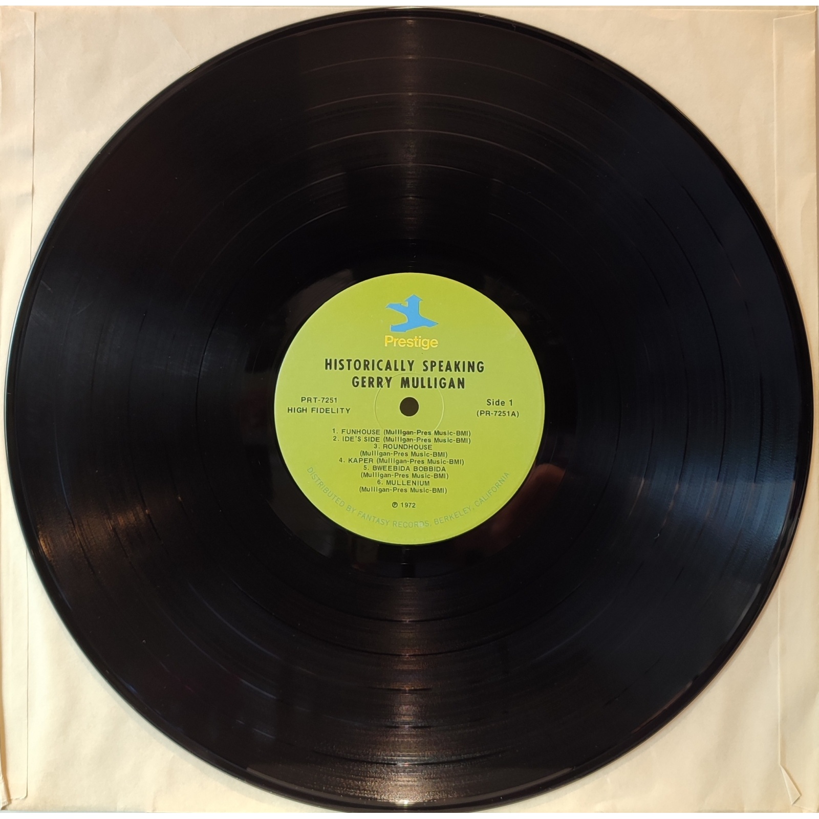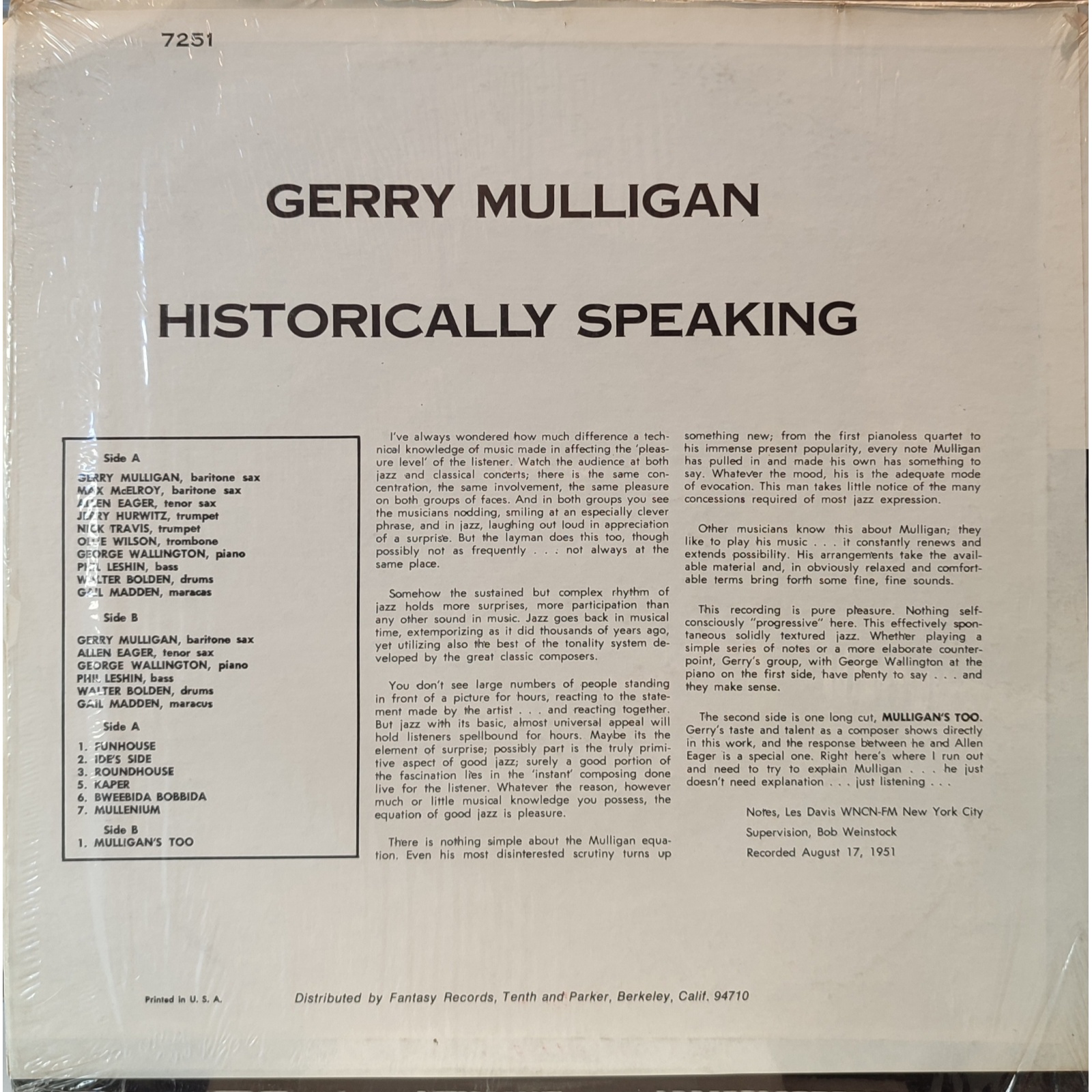 Ristampa americana, in vinile di seconda mano, dell'album "Historically speaking" del sassofonista baritono Gerry Mulligan.