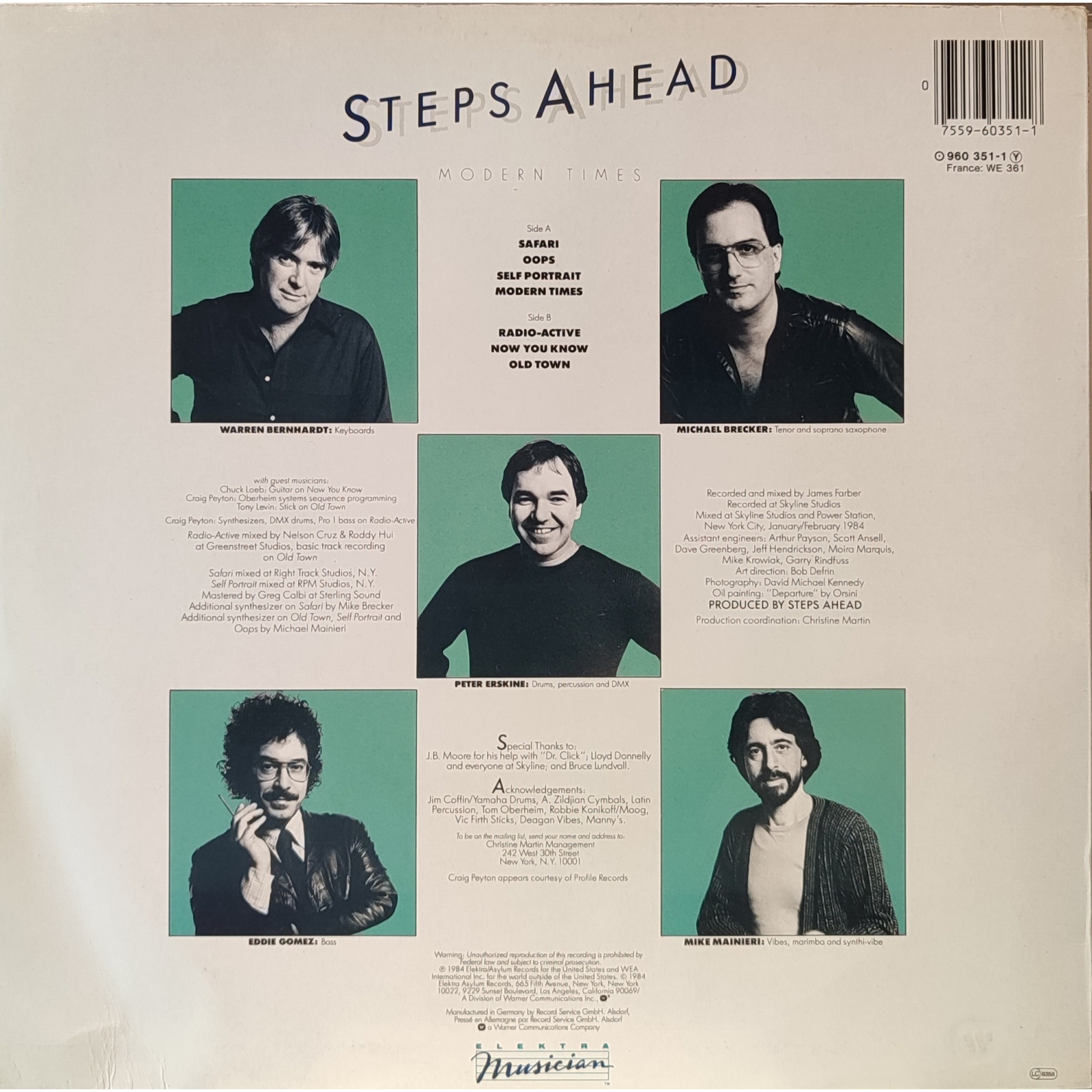 Prima edizione tedesca, in vinile di seconda mano, del terzo album in studio del gruppo jazz americano Steps Ahead,"Modern Times".