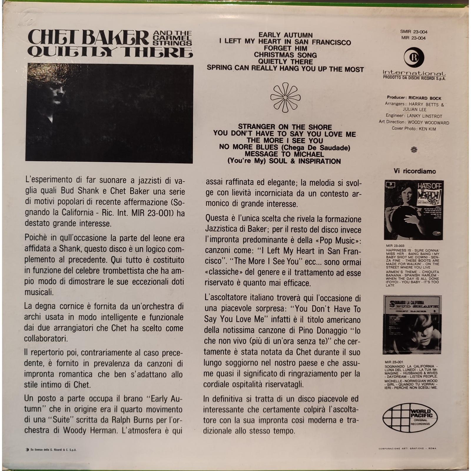 Prima edizione italiana, in vinile di seconda mano, dell'album "Quietly there" del trombettista statunitense Chet Baker.