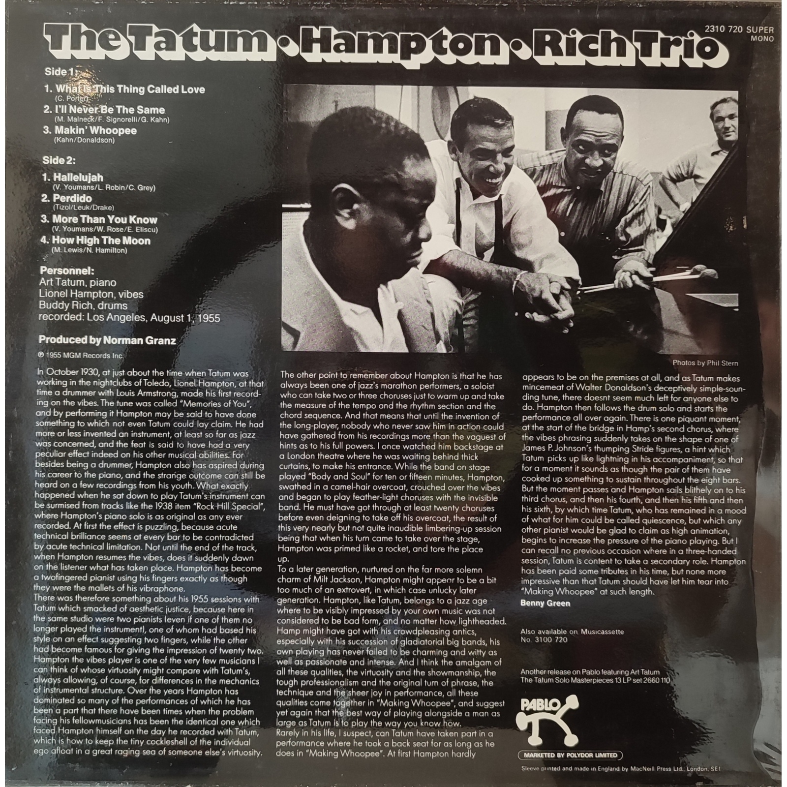 Ristampa inglese, in vinile di seconda mano, dell'album "The Tatum Hampton Rich Trio"