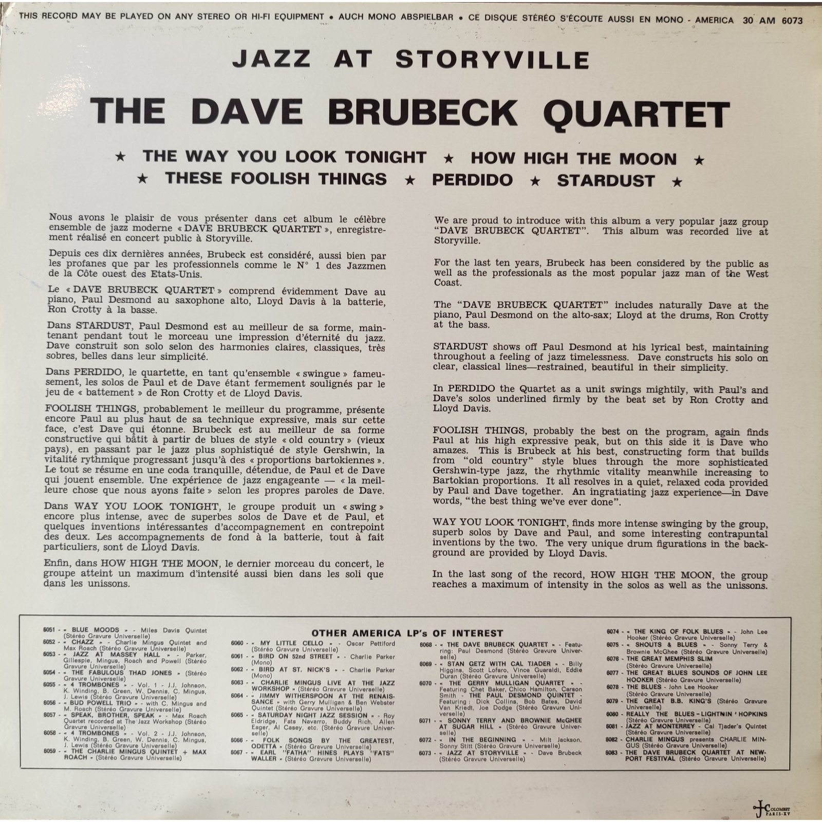 Prima edizione francese, in vinile di seconda mano, dell'album "Jazz at Storyville" del Dave Brubeck Quartet.