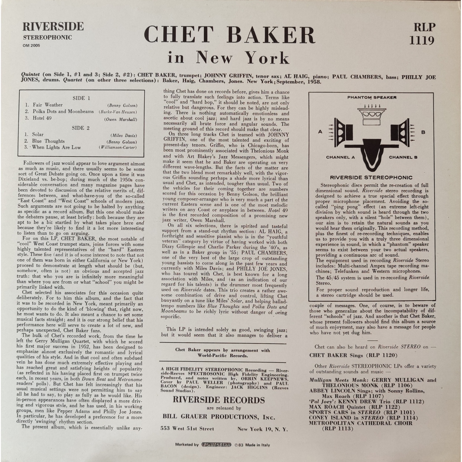 Prima edizione italiana, in vinile di seconda mano, dell'album "Chet Baker in New York" del trombettista statunitense Chet Baker.