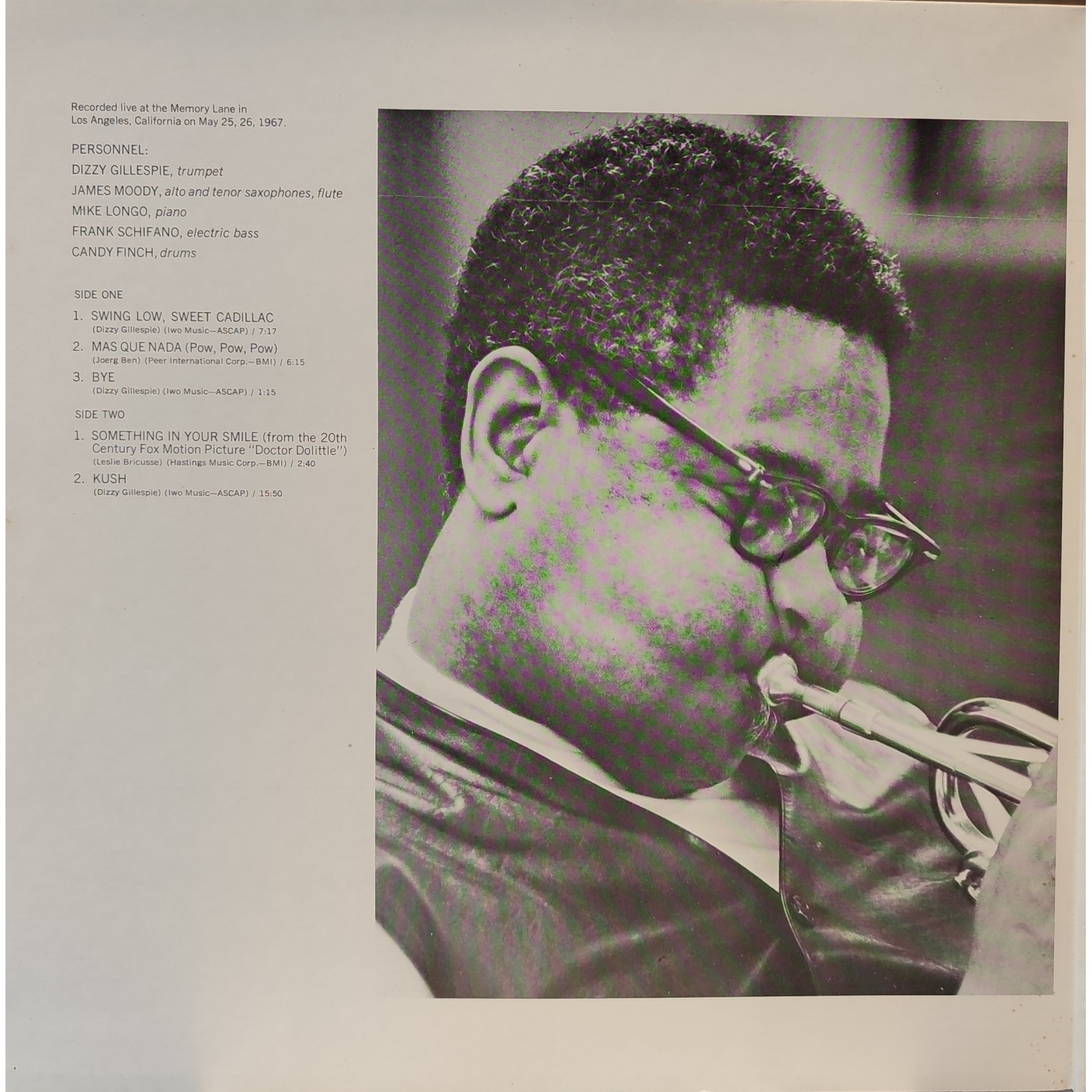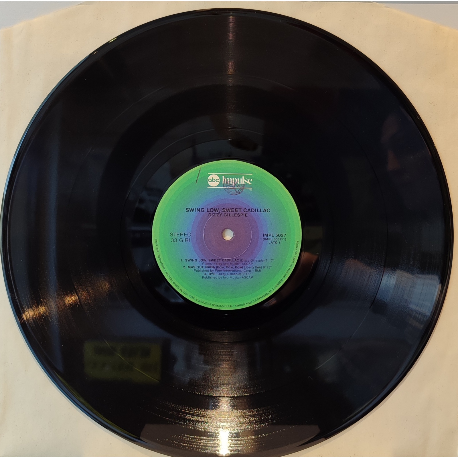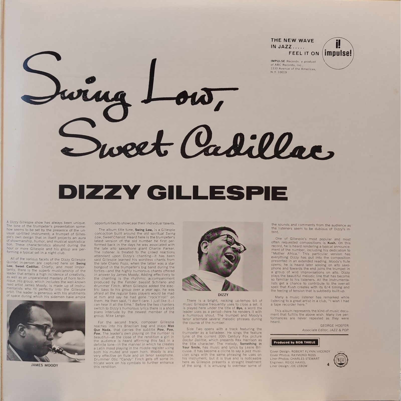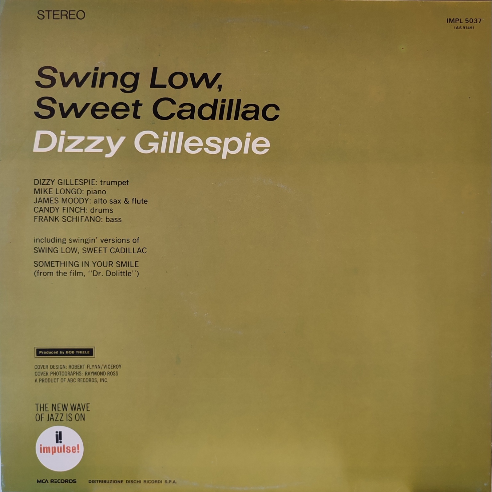 Prima edizione italiana, in vinile di seconda mano, dell'album live "Swing Low Sweet Cadillac" del trombettista statunitense Dizzy Gillespie.
