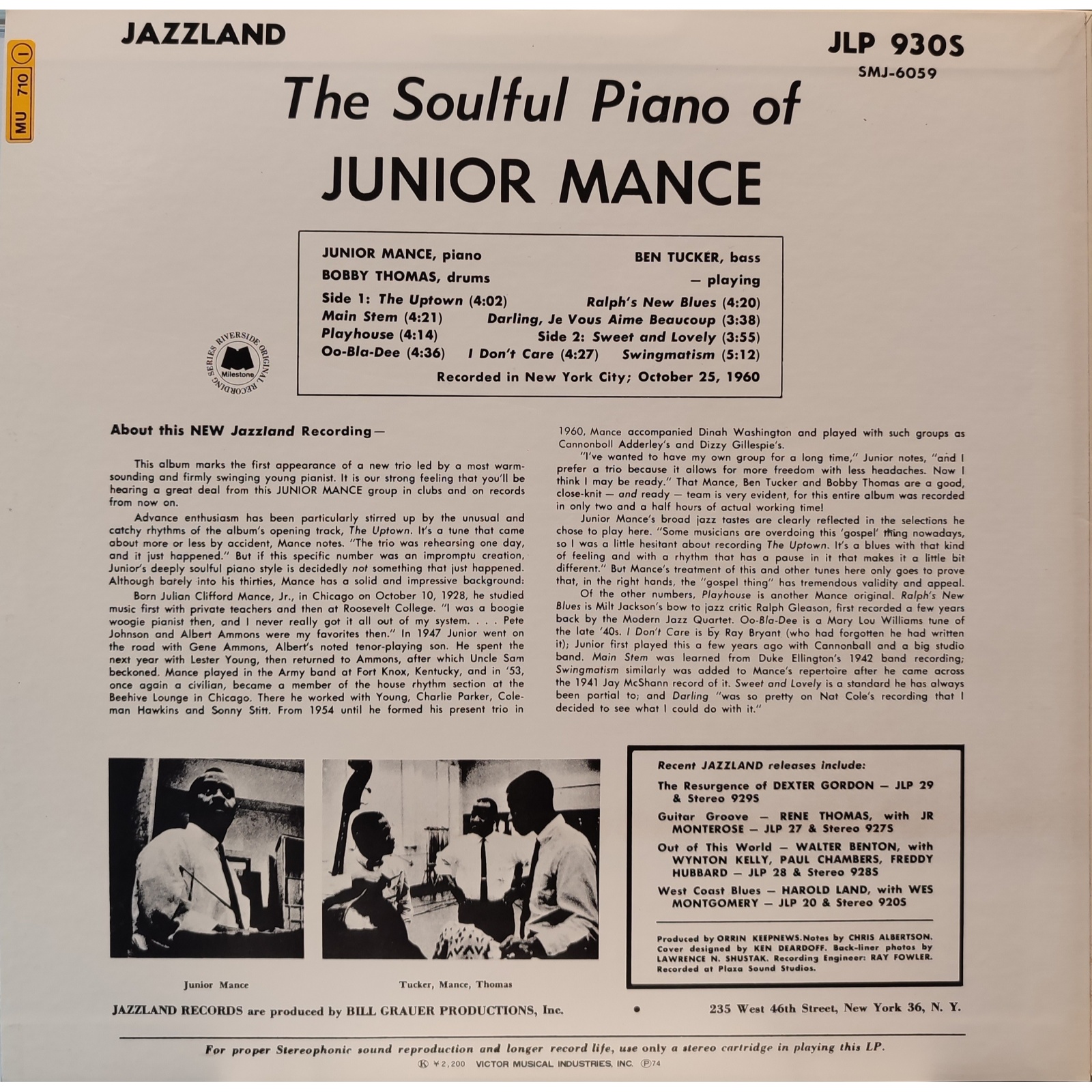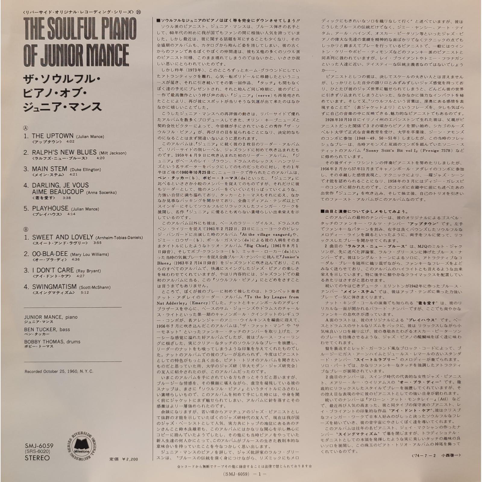 Datato 1974, etichetta Milestone, comprensivo di inserto in giapponese.
