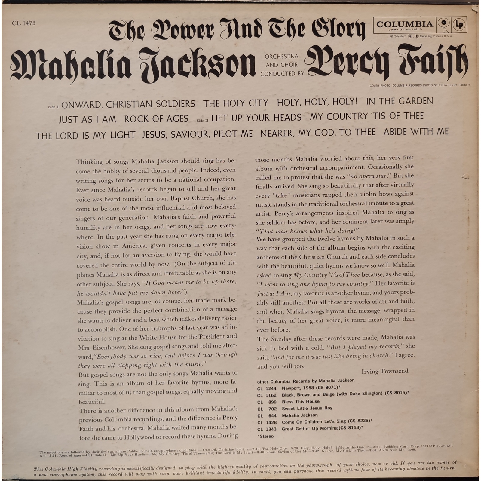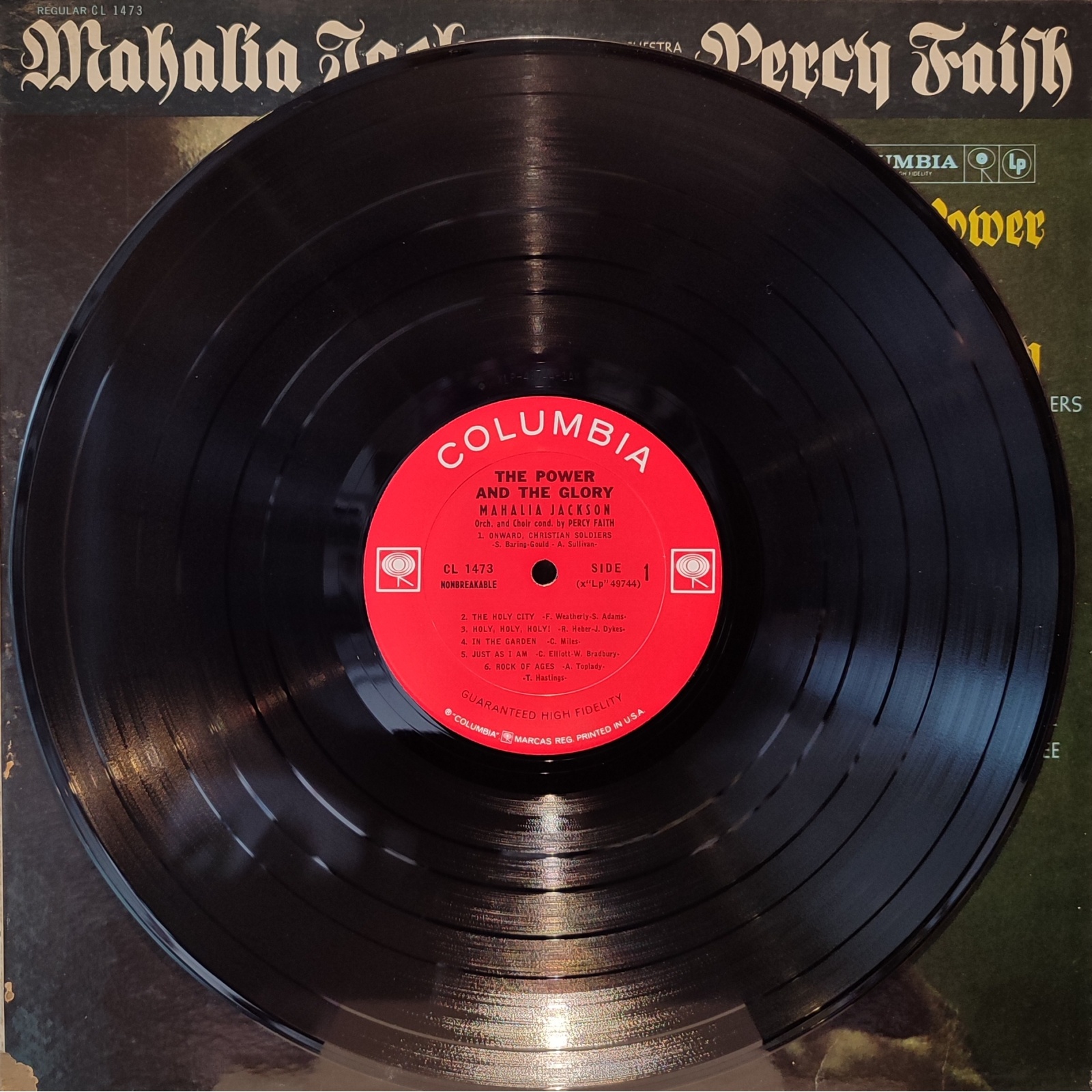 Ristampa americana, in vinile di seconda mano, dell'album "The power and the glory" della cantante Mahalia Jackson.