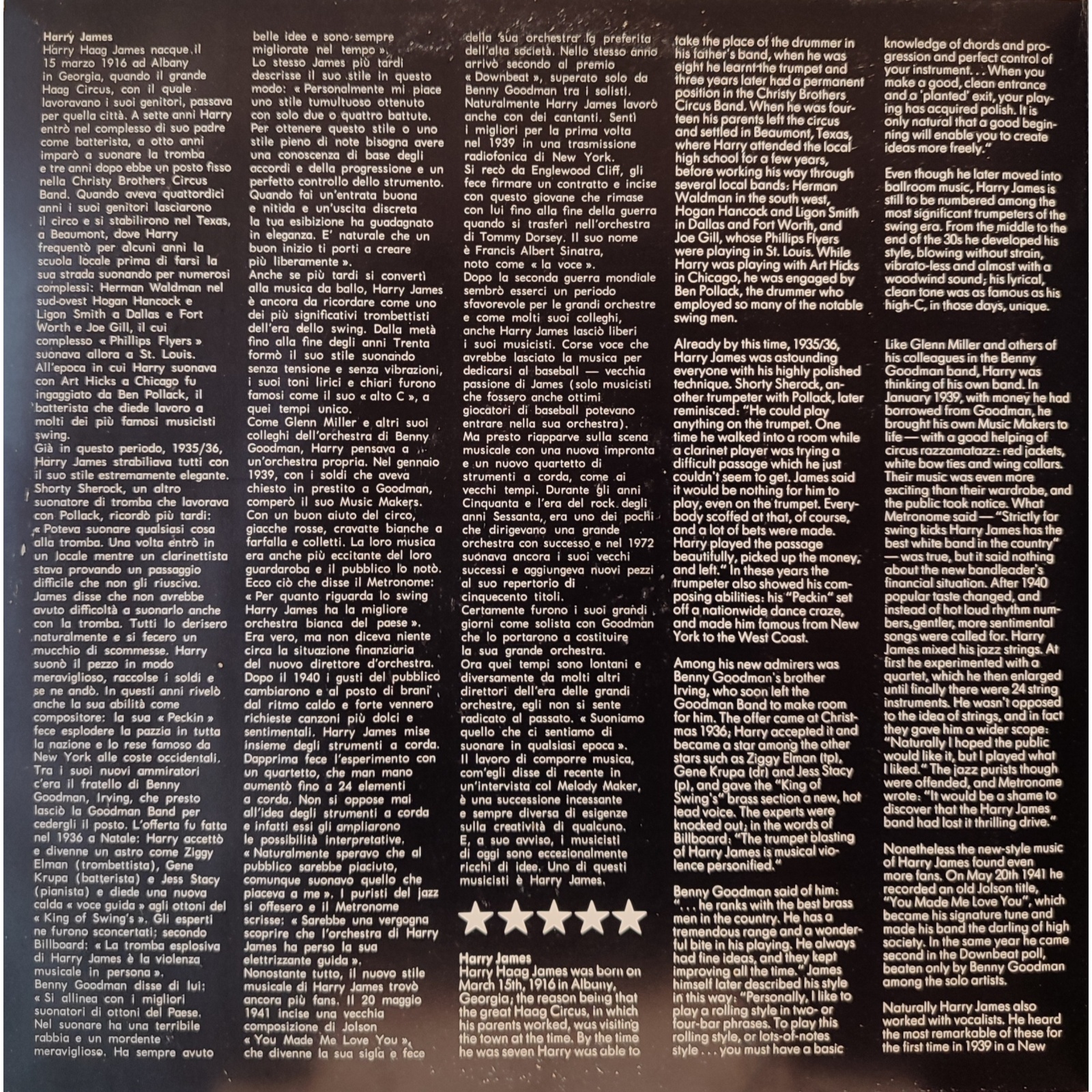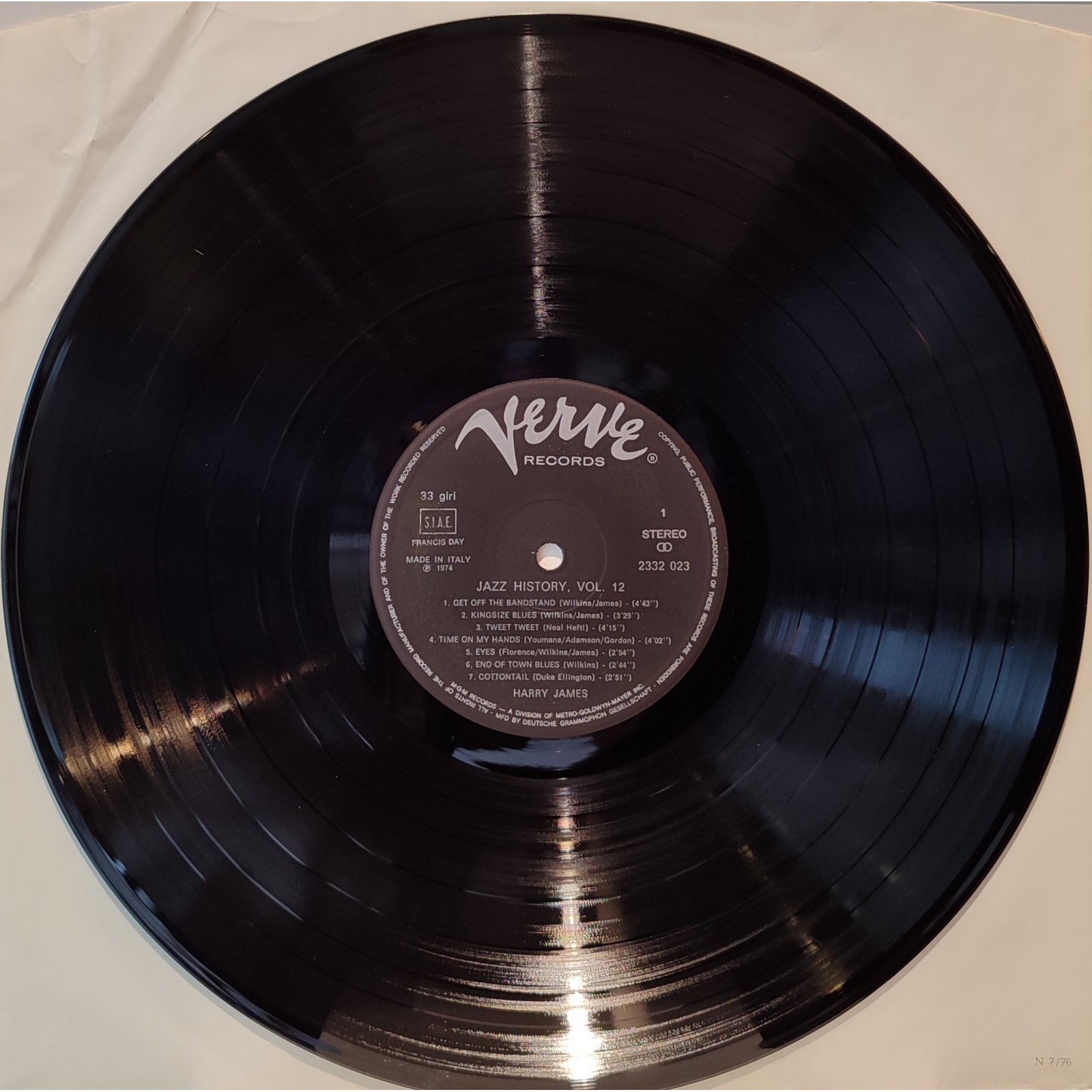 Prima edizione italiana, in vinile di seconda mano, della raccolta "Jazz - History vol.12" del trombettista Harry James.